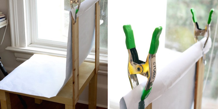 The simplest way to achieve this is by pushing a chair against a wall, and taping craft paper on the wall allowing it naturally fall to the ground, creating a seamless transition between the vertical to horizontal plane.